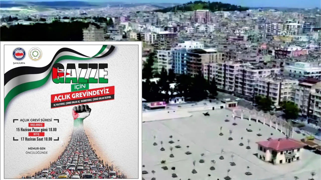 Gazze’de aylardır süren saldırılara karşı Türkiye’den yükselen vicdan sesine Şanlıurfa’dan anlamlı bir destek geliyor. Memur-Sen ve Eğitim-Bir-Sen Şanlıurfa İl Başkanı İbrahim Coşkun, Gazze’de yaşanan insanlık dramına dikkat çekmek ve uluslararası kamuoyunda farkındalık oluşturmak amacıyla bugün saat 18.00’de Rabia Meydanı’nda açlık grevi başlatacaklarını duyurdu.
